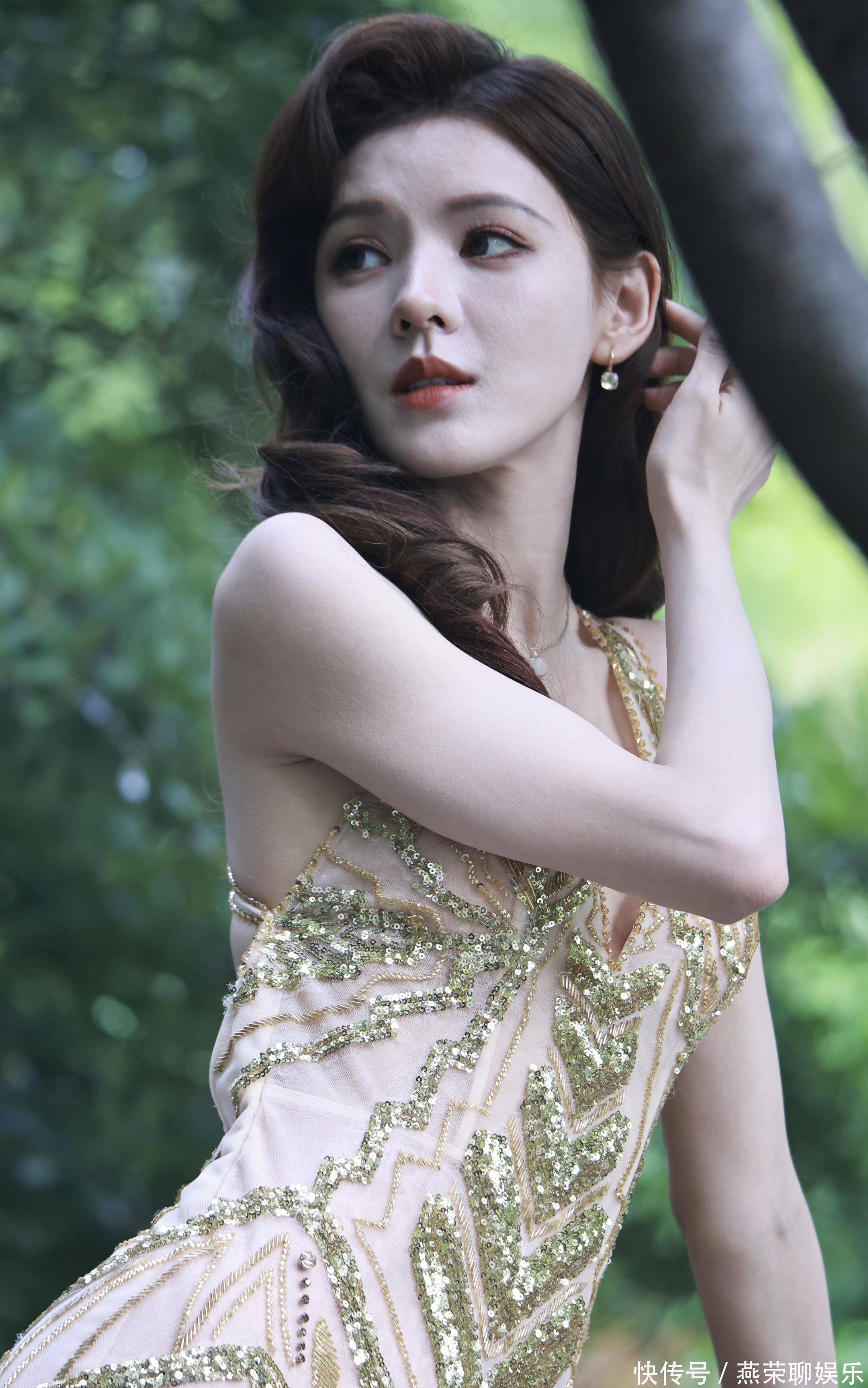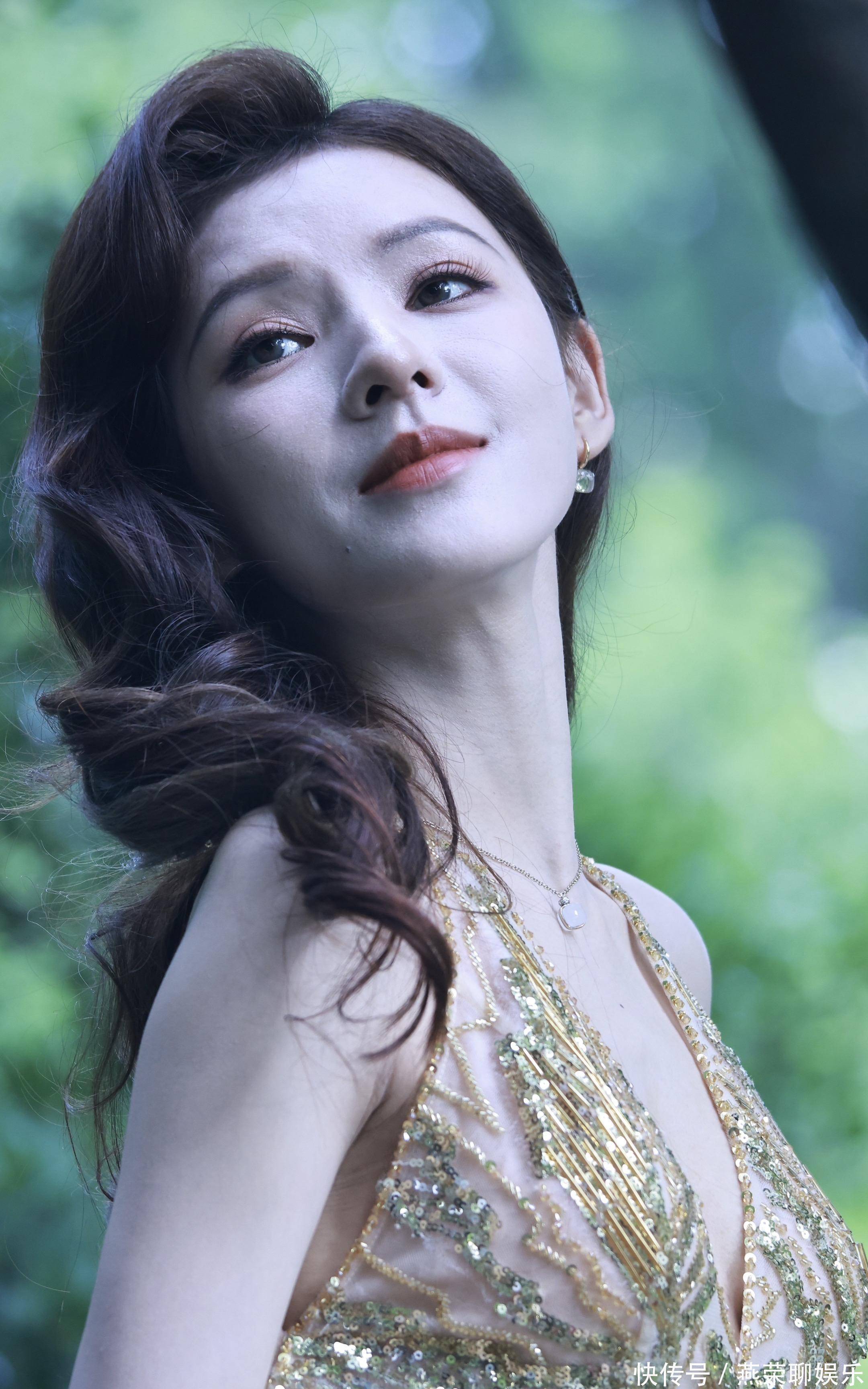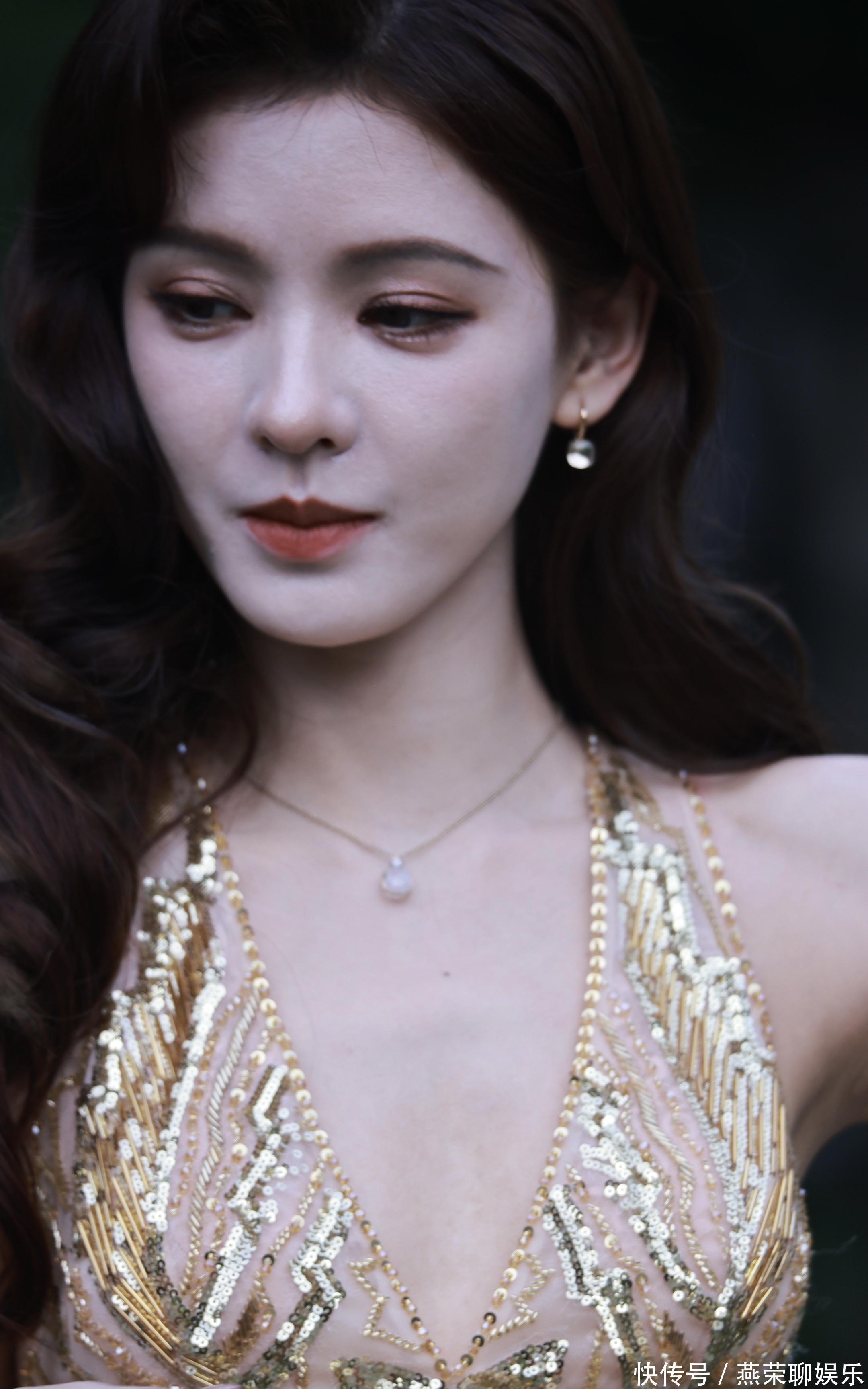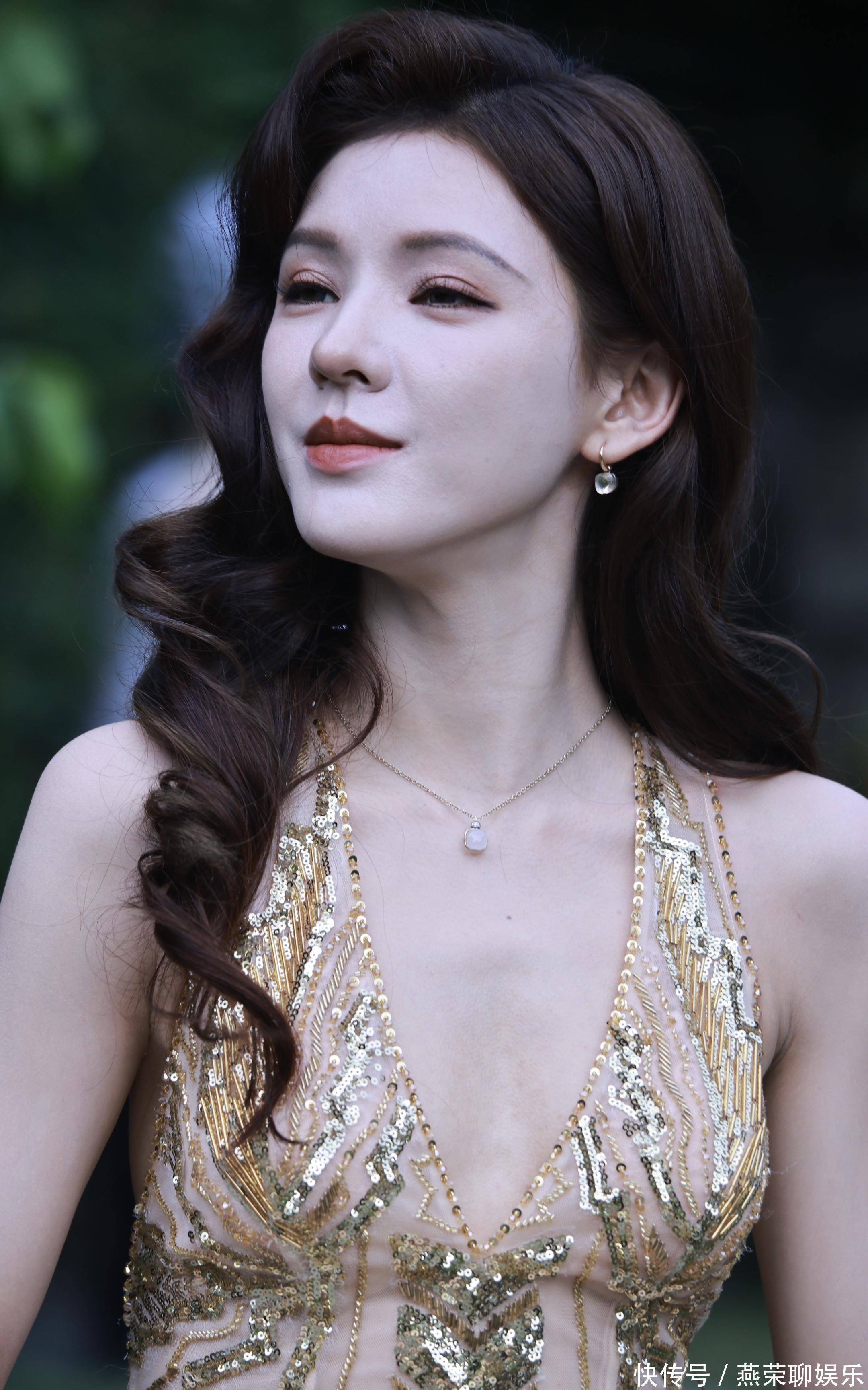 她这次穿的鎏金礼服也很绝,把复古和华丽糅在一起,深 V 设计大胆但不低俗,露背的地方又多了点小性感。这种穿搭的眼光,让我想起迪丽热巴金鹰节的丝绒红裙,还有倪妮的港风红毯造型 —— 真正会美的人,从不让衣服抢了自己的风头,而是让服装给自个儿加分。