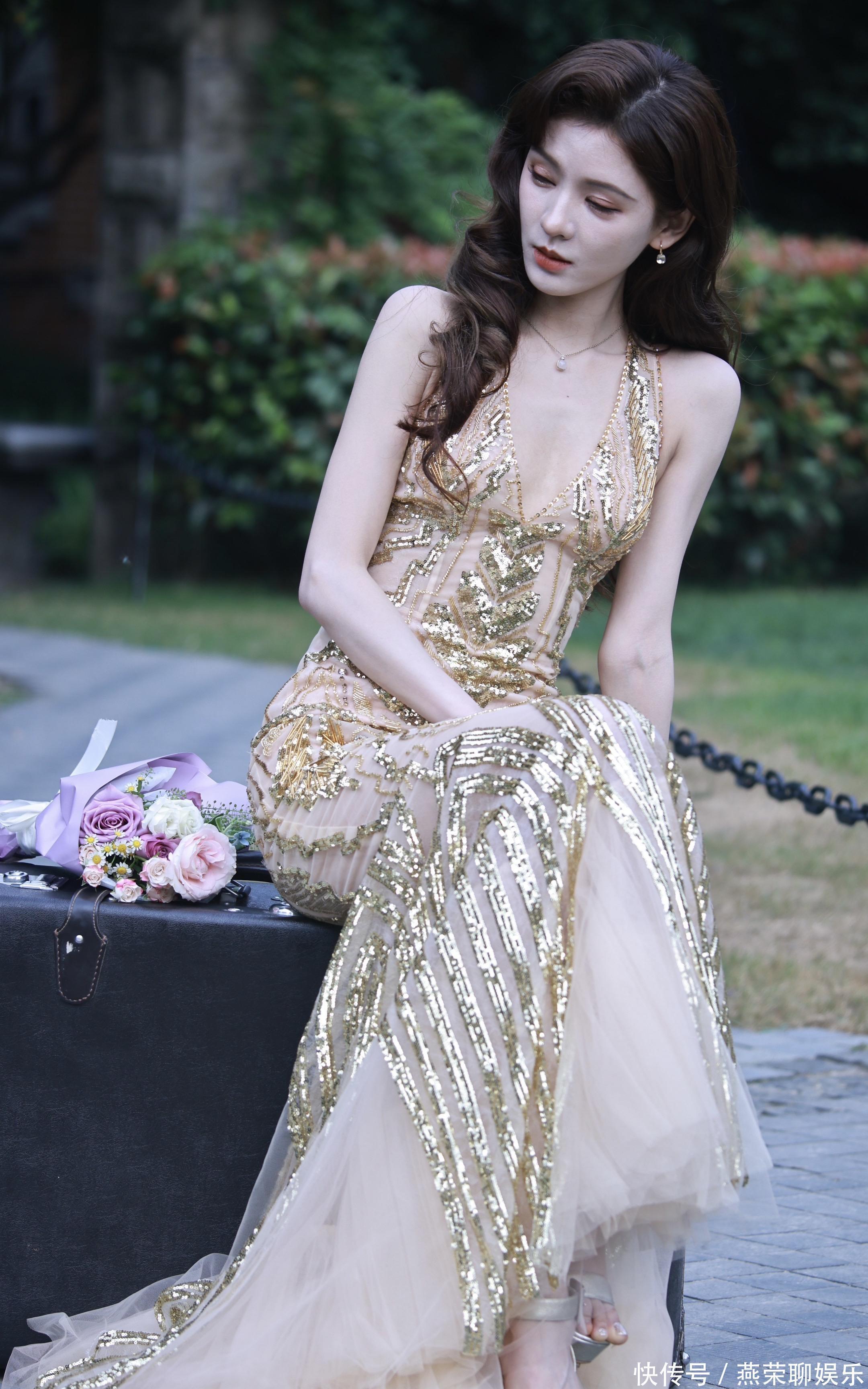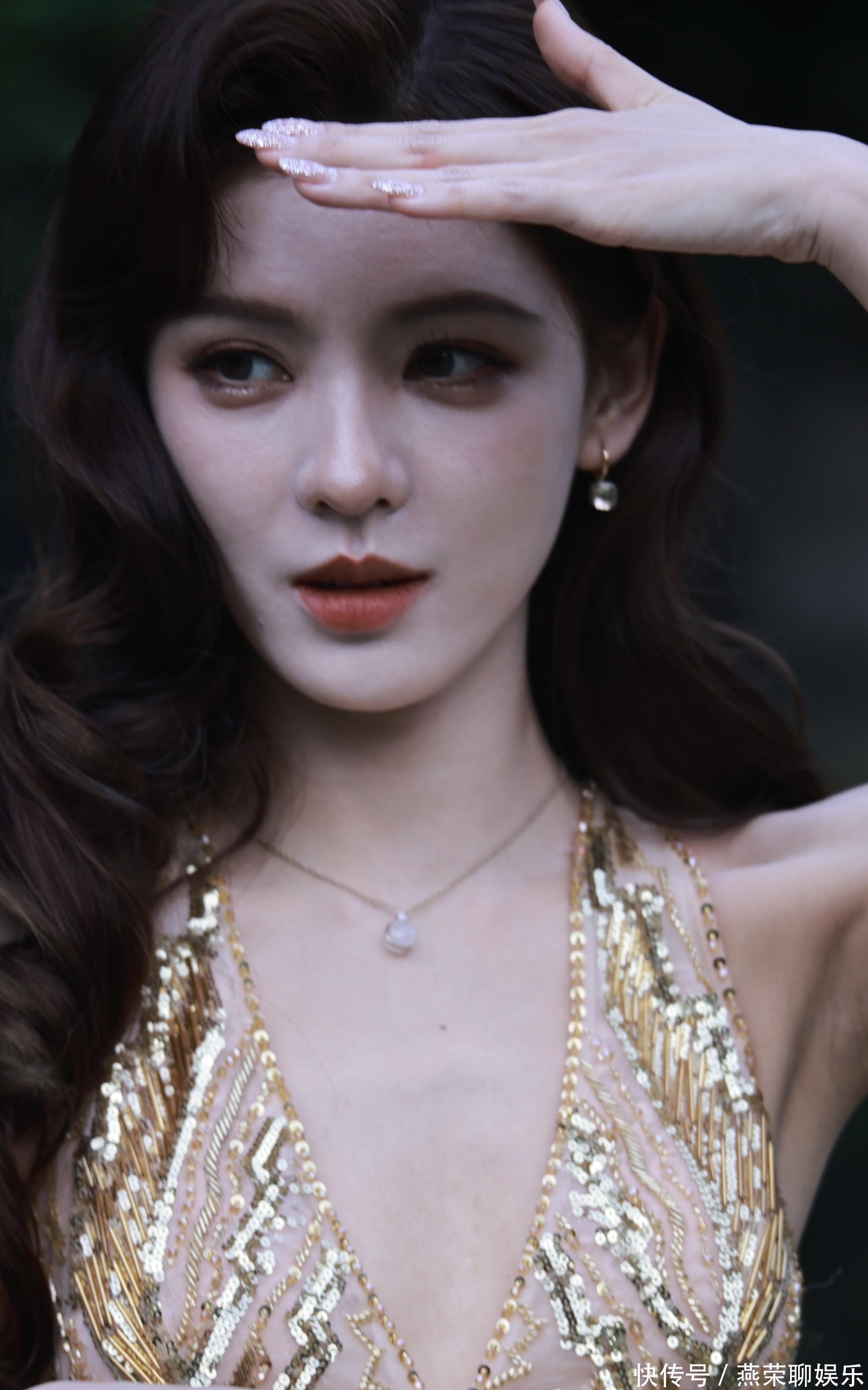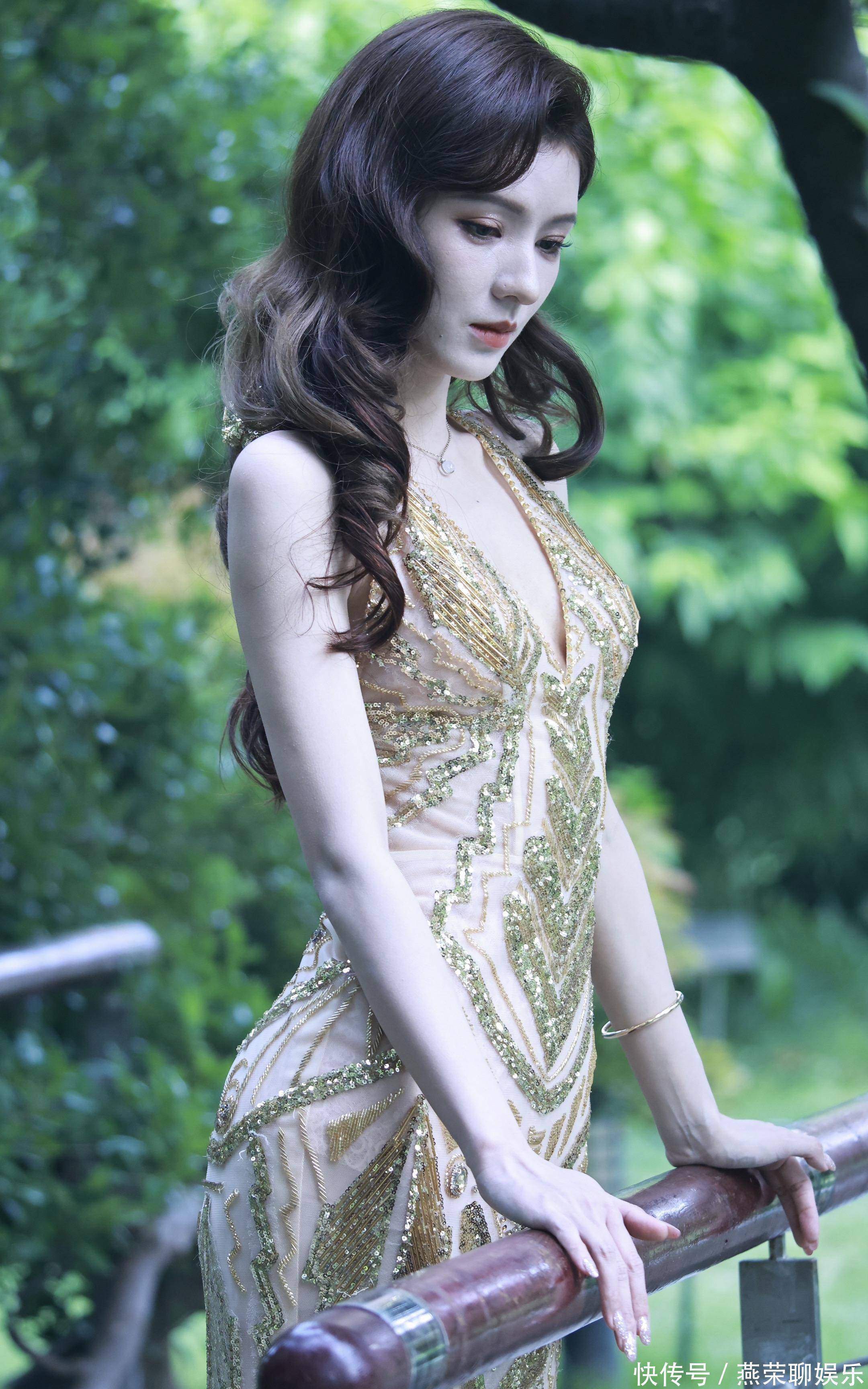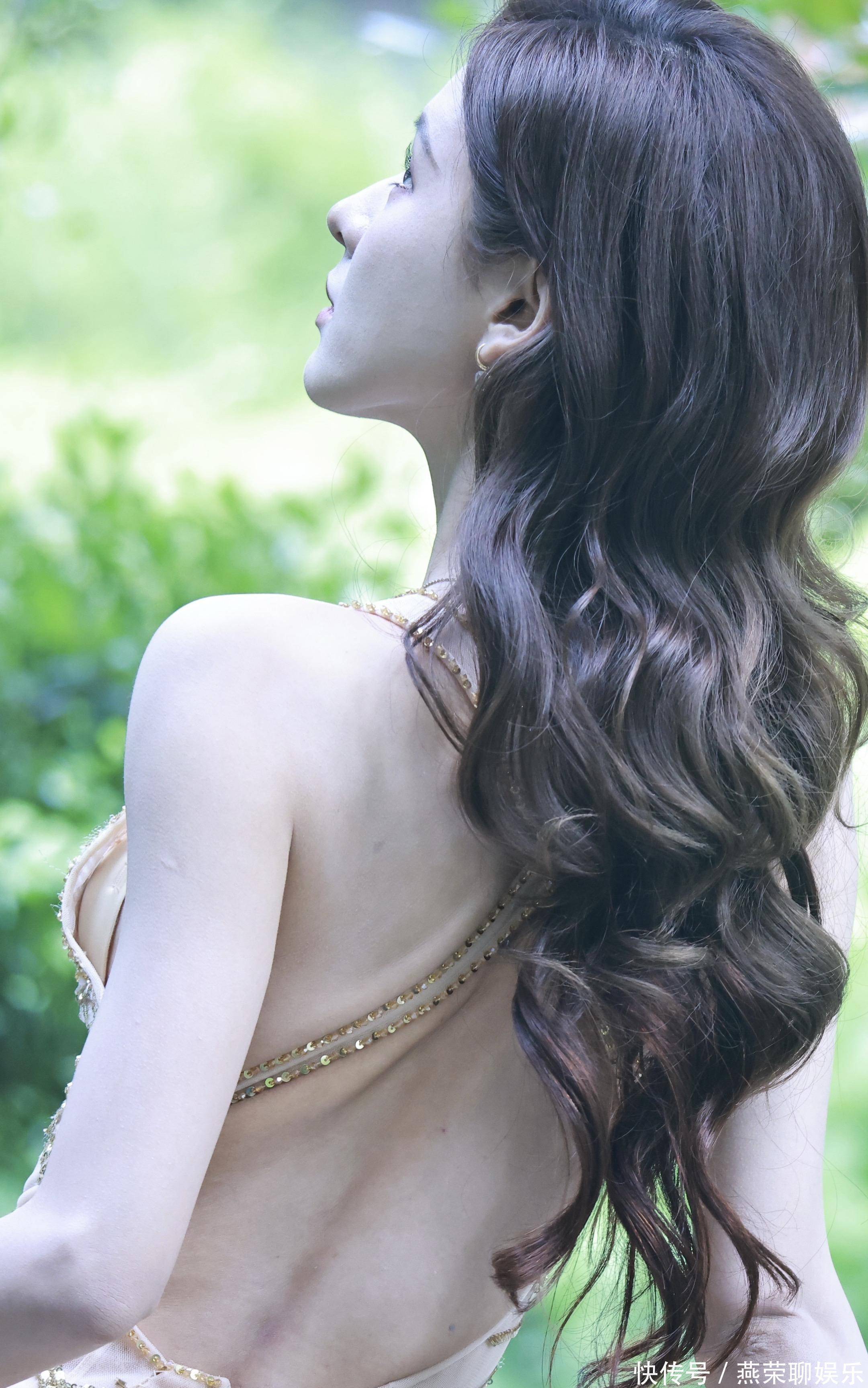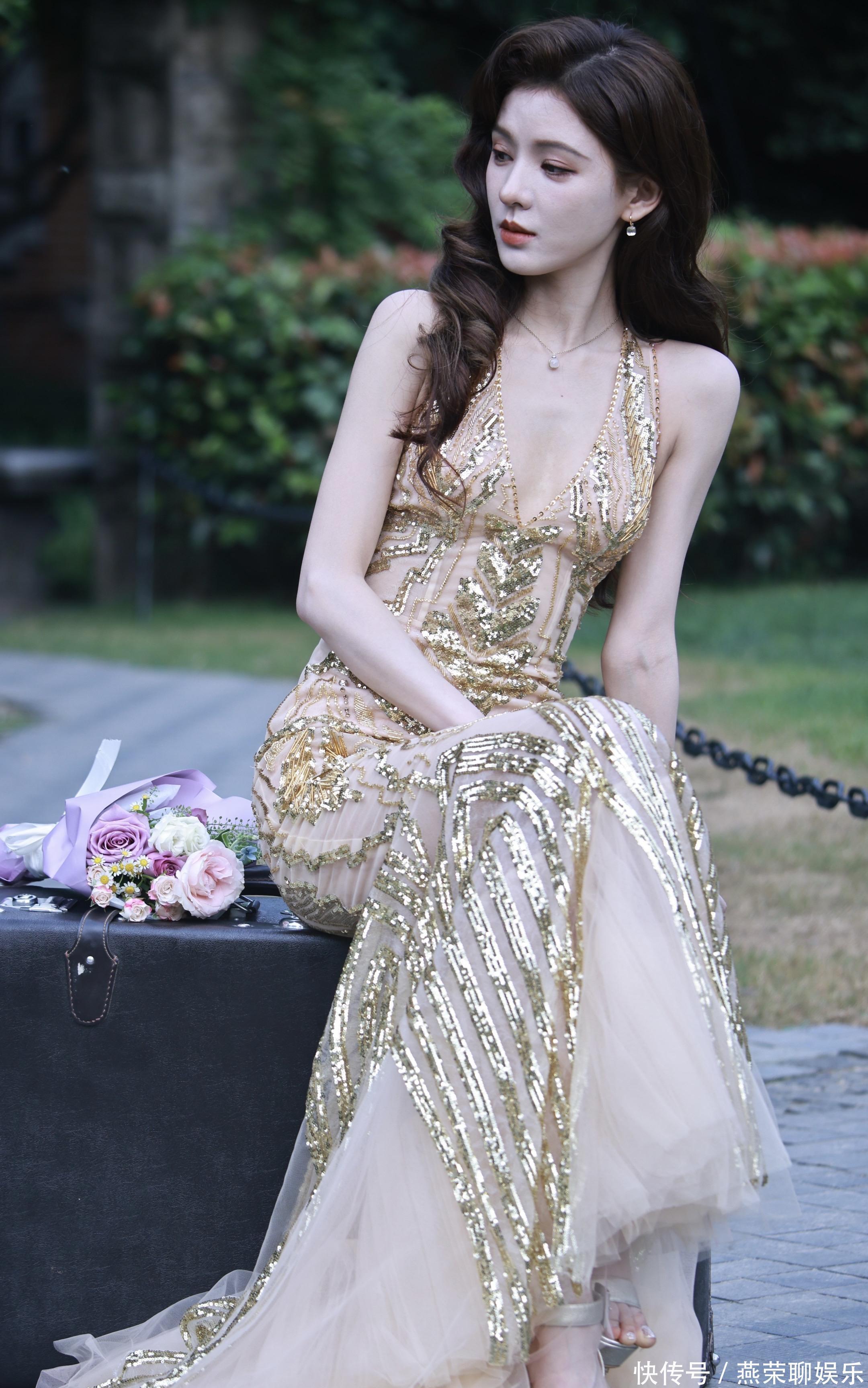 她这次穿的鎏金礼服也很绝,把复古和华丽糅在一起,深 V 设计大胆但不低俗,露背的地方又多了点小性感。这种穿搭的眼光,让我想起迪丽热巴金鹰节的丝绒红裙,还有倪妮的港风红毯造型 —— 真正会美的人,从不让衣服抢了自己的风头,而是让服装给自个儿加分。